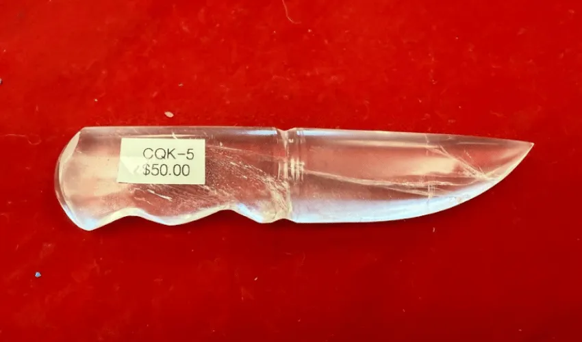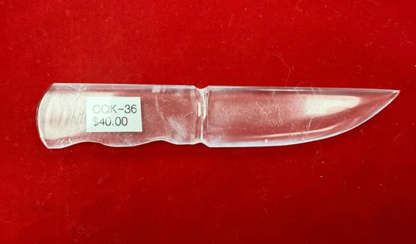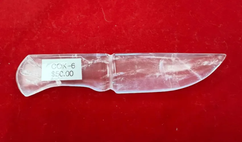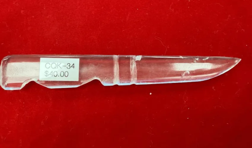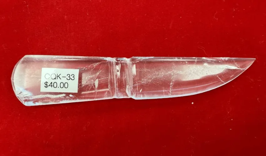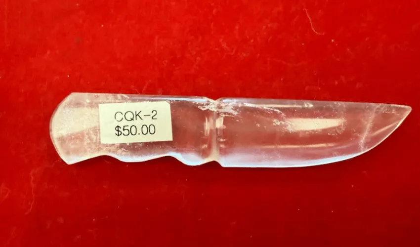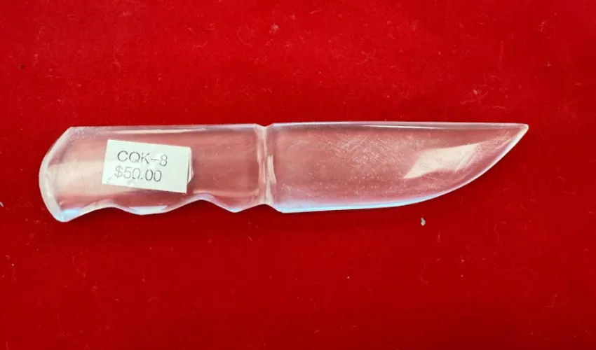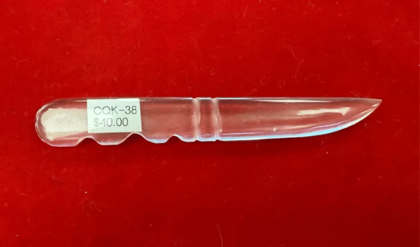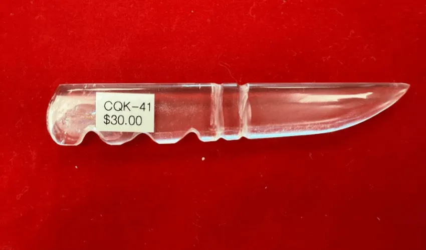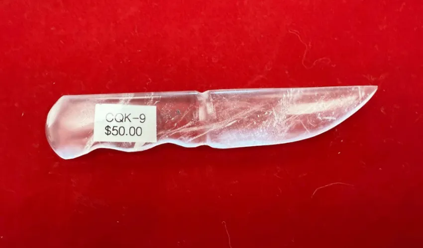 Crystal knives are traditionally used for energetic cutting, separation, and clearing. In energy work, they are associated with removing unwanted energetic attachments or blockages. Their defined shape allows for precise application during cleansing or balancing practices. Each knife differs in crystal type, length, and form, and is handled with care due to its delicate structure.